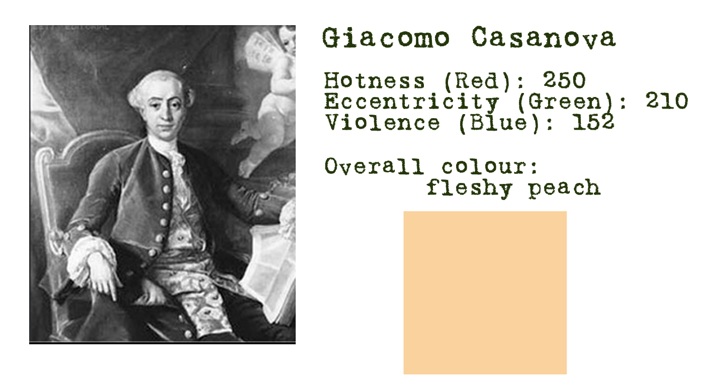Now pick a personage and quantify each characteristic on a scale of 0-255 (this is the scale used by PhotoShop – I am not being eccentric). Type each number into the colour picker and apply: