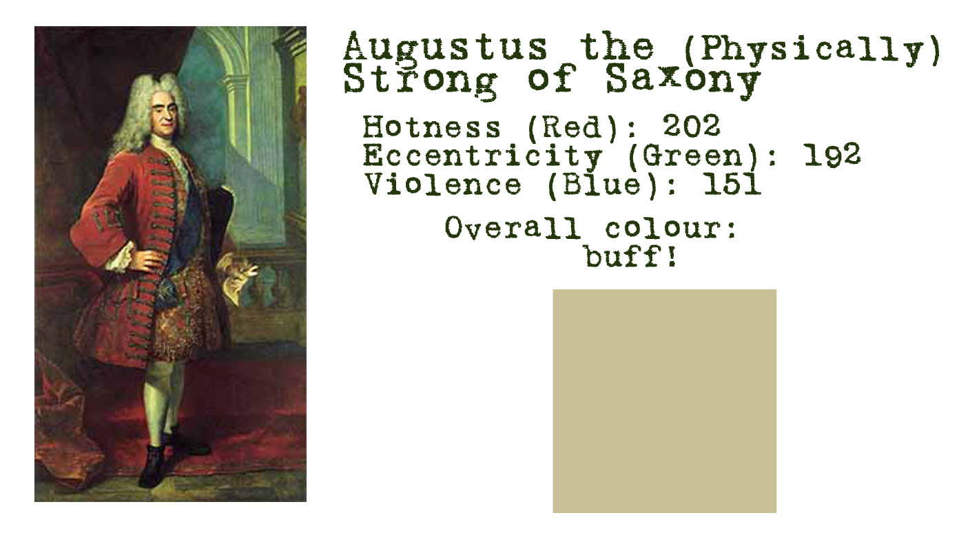 My university supervisor referred to Augustus as “Augustus the Physically Strong” so as to be absolutely clear about the kind of strength he possessed. His other epithets were “The Saxon Hercules” and “Iron-Hand”, owing to his party trick of breaking horseshoes with his bare hands. He was also known to ride through Dresden holding his horse’s reins in his teeth, while he balanced an urchin in each hand.