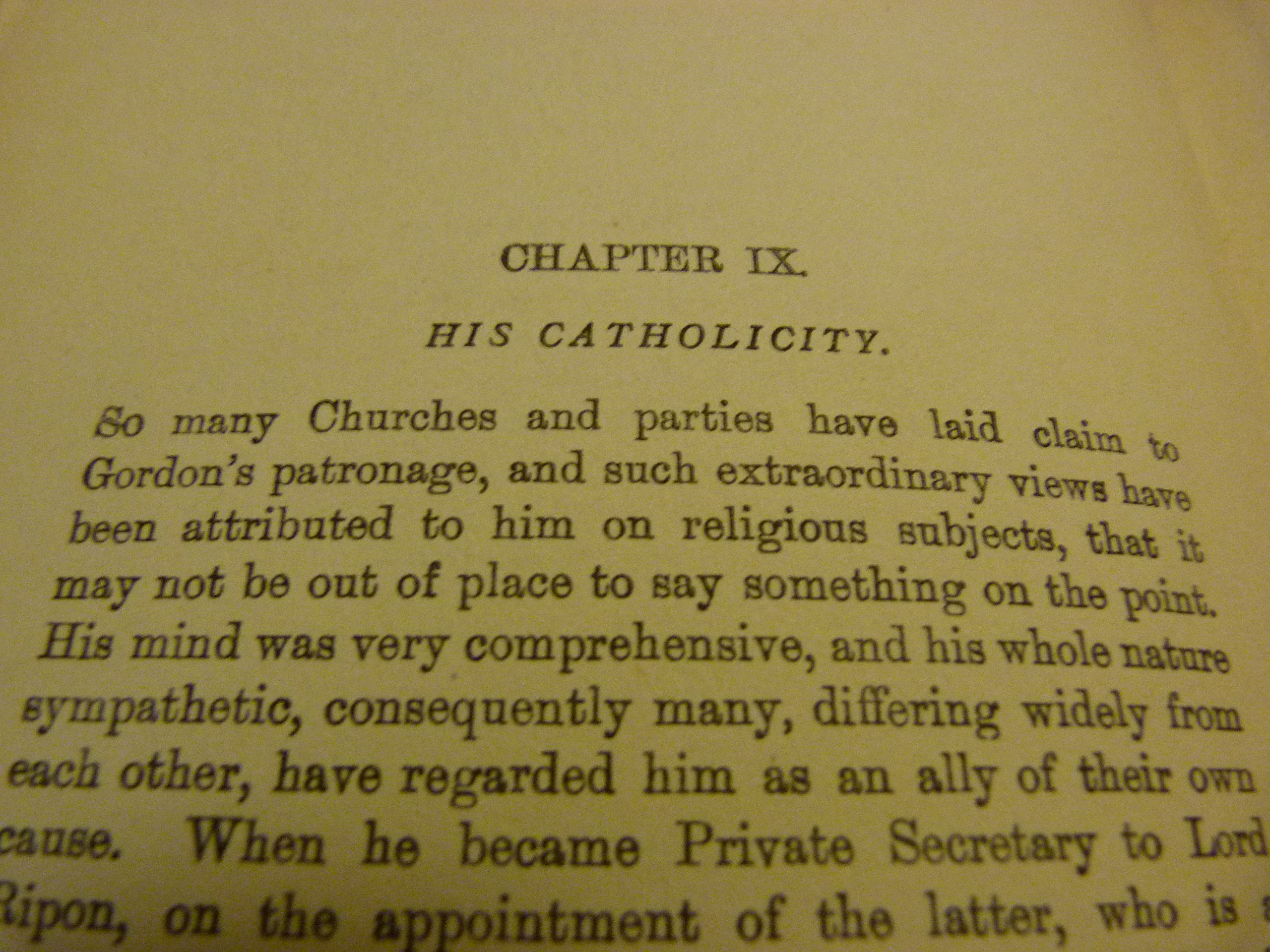 Churchill excuses these “errors” on the grounds that “Gordon was not a trained theologian but an earnest Christian soldier,” and that his solitary lifestyle meant that he “often lost opportunities of hearing both sides of a question.” Otherwise, we can rest assured, he would have been a thoroughly conventional Anglican.
