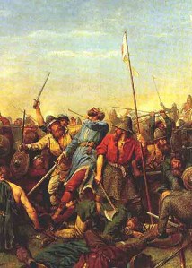All went well until the Normans cowardly ran away, tempting the fyrdmen and two of Harold’s brothers to run after them. Turning, the wicked Norman cavalry cut them down, including Leofwine and Gyrth.